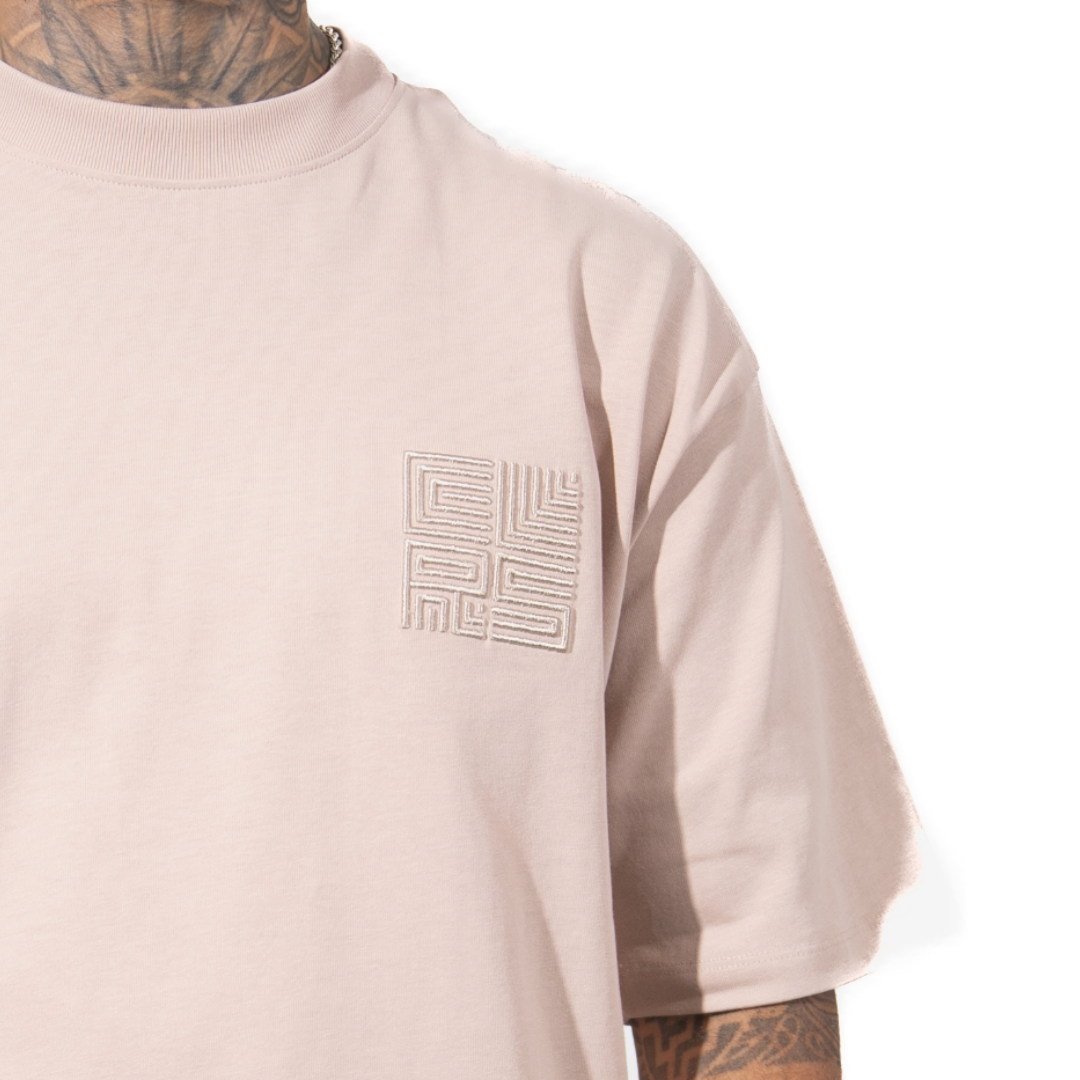 3H x CLRS Beige Tone-on-Tone Heavy Relax Fit Short Sleeve 100% Cotton T-shirt 3D Embroidered design